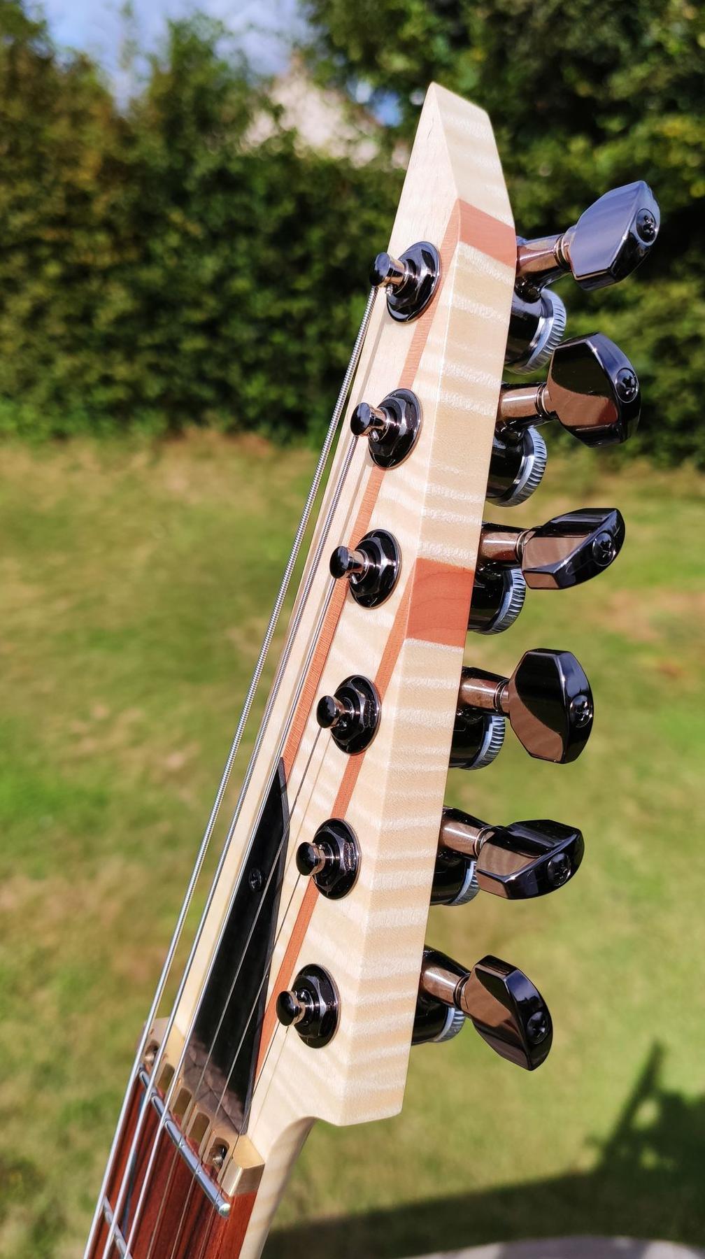 - Tout l'accastillages de base est de marque GOTOH (made in Japan). Cela comprend : les mécaniques, le chevalet, les attaches sangle, les boutons, les férules
